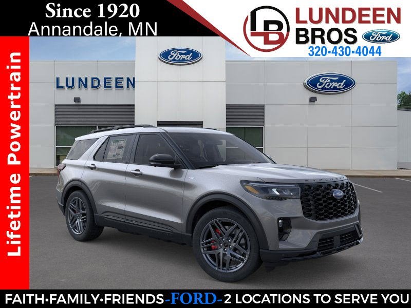 Lundeen Bros Ford of Annandale is a Family Owned and Operated Dealership. We are the Home of Lifetime Powertrain Warranty. Faith Family Friends and Fords since 1920. Gray Metallic 2026 Ford Explorer ST-Line 4WD 10-Speed Automatic 2.3L EcoBoost I-4